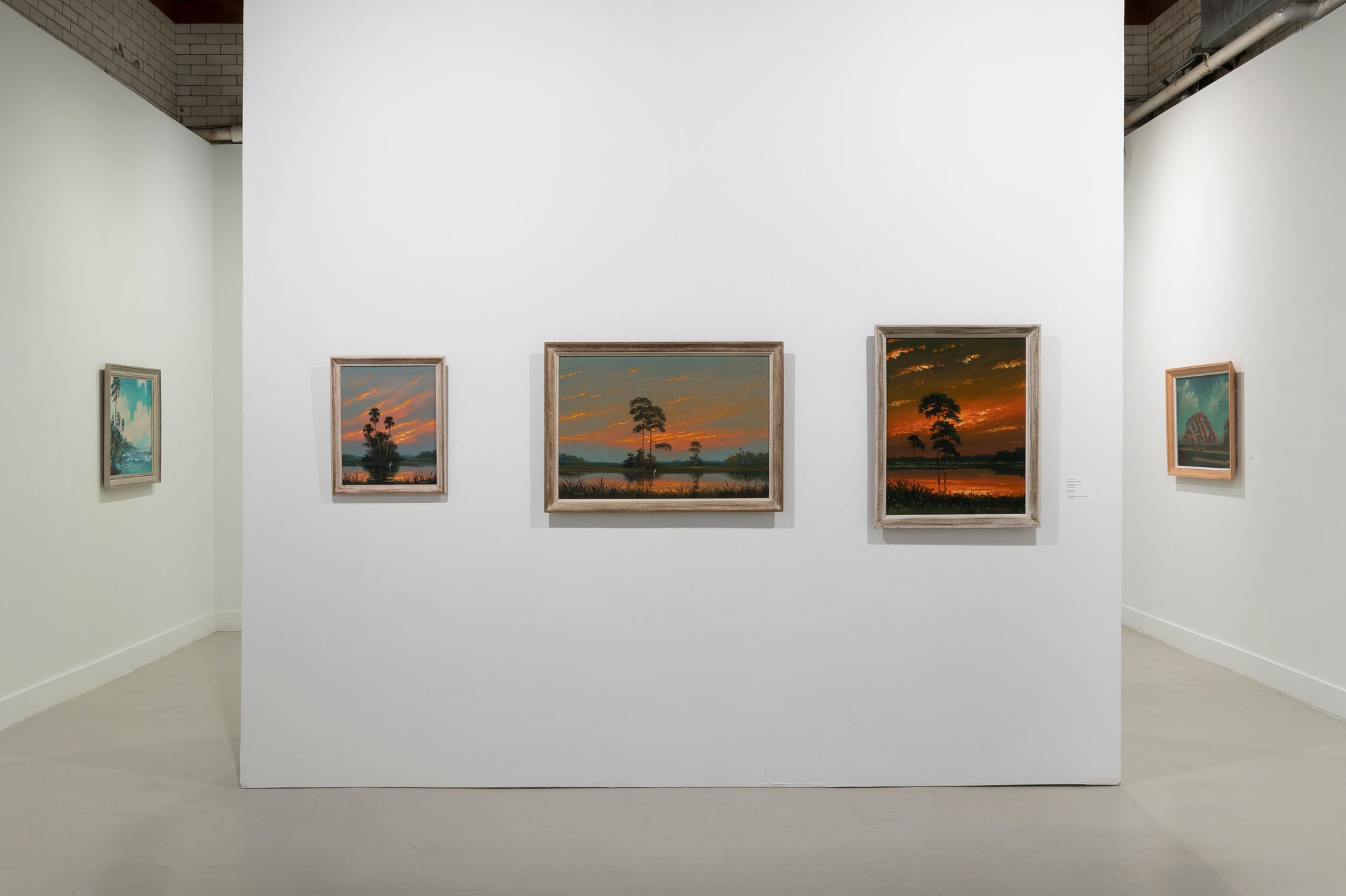 Largely untrained as artists, this informal cohort of young painters was rediscovered in the mid-1990s when they were retrospectively named the Highwaymen to refer to their innovation of an entrepreneurial strategy that harnessed landscape painting as a vehicle to bypass low-paying work in the state’s citrus groves. Shut out of the museum and the gallery system by racial segregation and Florida’s Jim Crow laws, the artists traveled the recently completed interstate roads and highways of Florida’s east coast, selling their paintings at reasonable prices “door-to door and store-to-store” from the trunks of their cars. Their mostly white patrons included a growing population of new homeowners as well as hotels, restaurants and doctor’s offices looking for affordable décor during the post-war boom period. In the process, the Highwaymen engendered a unique iteration of romantic regionalism that helped cultivate the iconography of Florida that nurtured the myth of the Sunshine State.