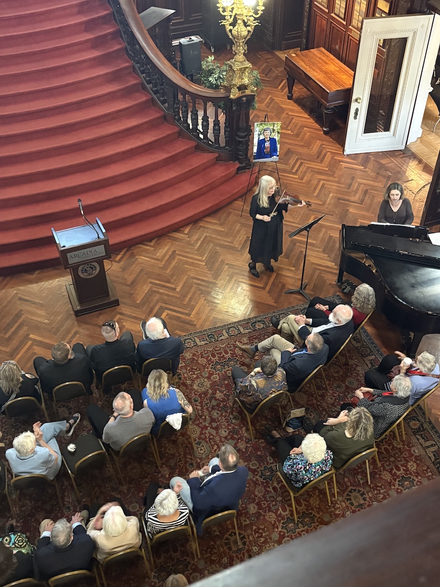 After mingling for the first half hour and perusing photographs and memorabilia on display in the Rose and Mirror Rooms, guests were invited to the Grand Hall. Valerie Levikoff, adjunct professor of music, set the tone by playing “Vocalise” by Sergei Rachmaninoff on violin, with piano accompaniment.