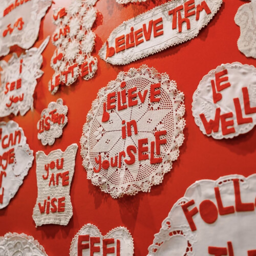 Home / News Type: News Story Campus News Craftivism Blooms in Keswick Village Through Class Project Displayed at Penny’s Flowers